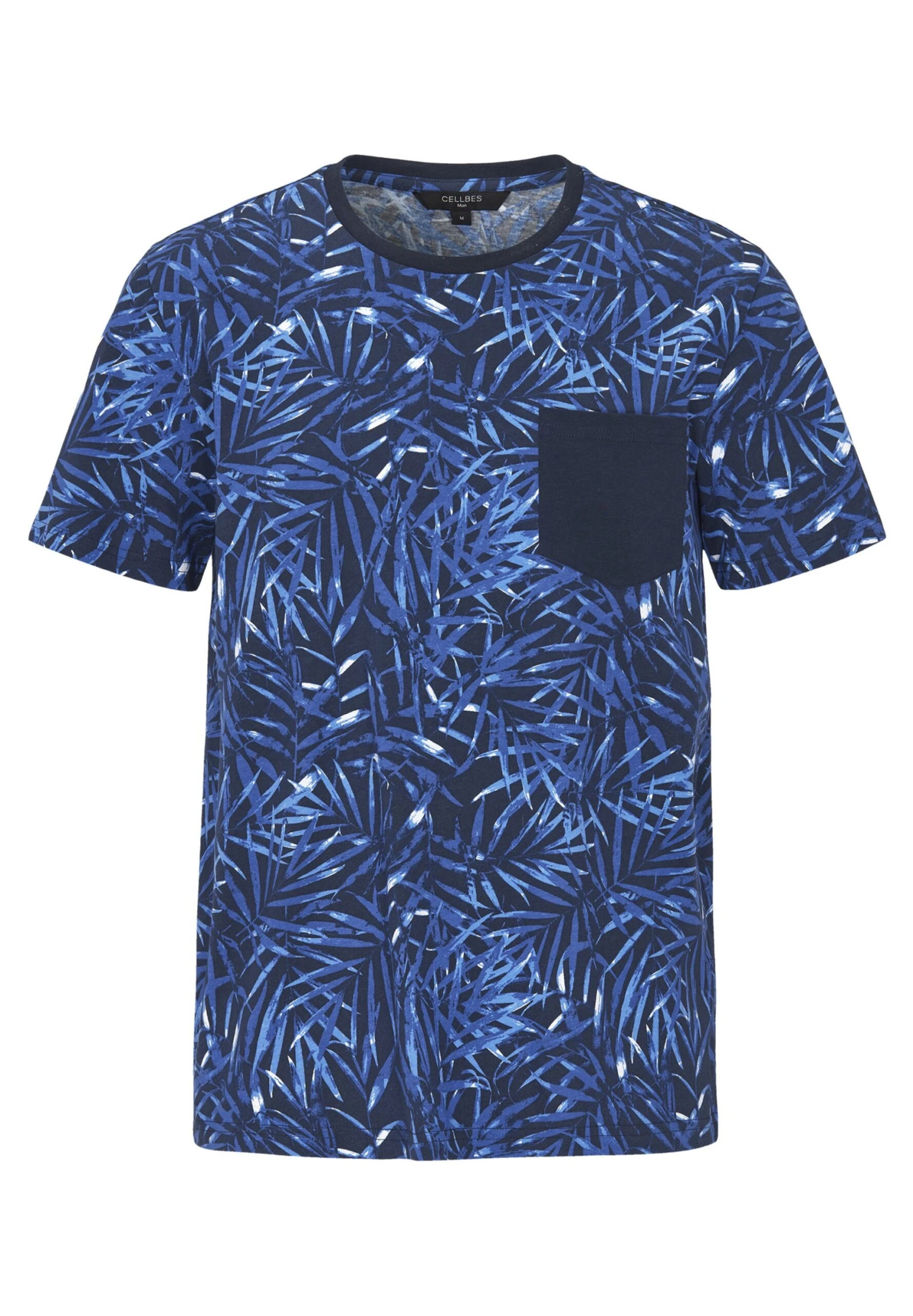 With Chest Pocket – T-Shirt Print – Navy Patterned/Blue